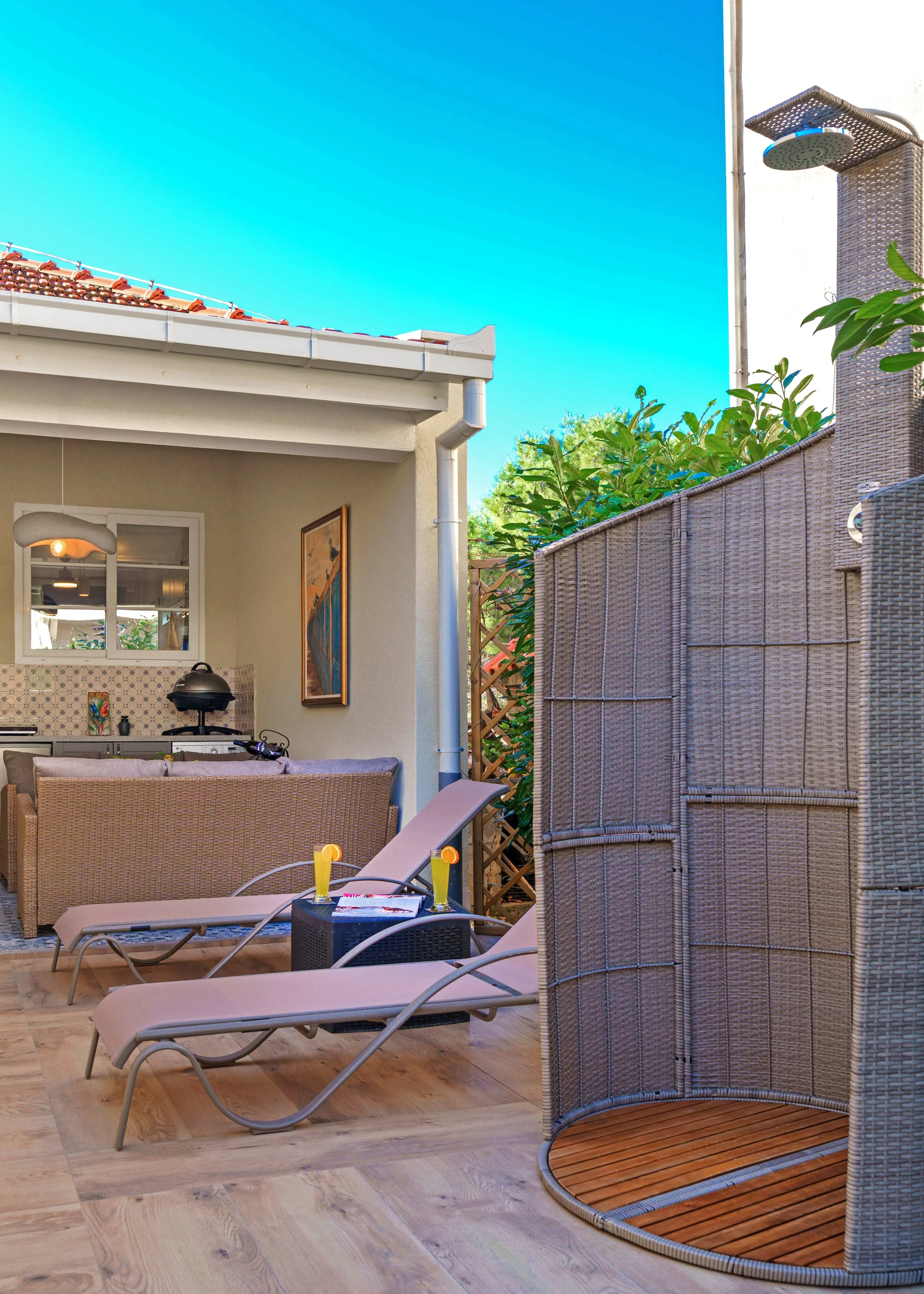 With its stone-and-wood design, outdoor-oriented layout, and beachfront location, this Villa Labineca unit offers an authentic yet refined seaside experience, as well as modern comforts such as air conditioning, high-speed optical internet, and a large flat-screen TV with Netflix.